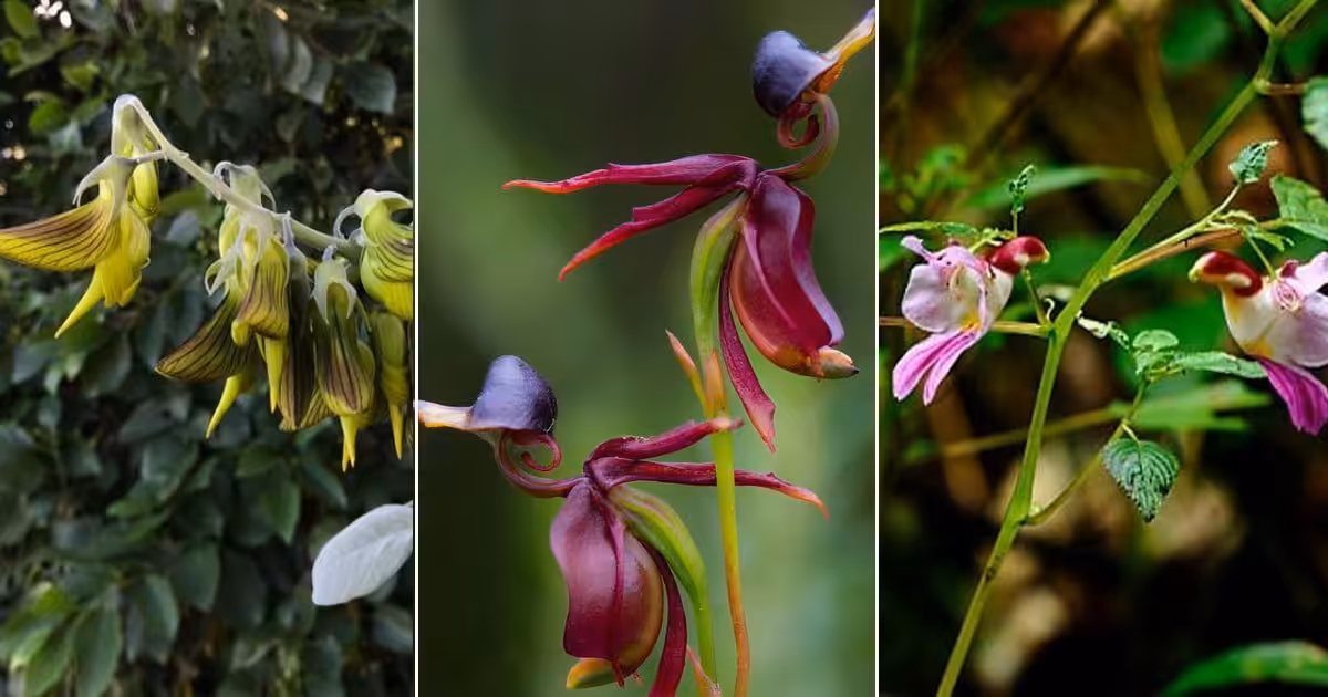 Parrot Flower, also called Impatiens Psittacina, or parrot balsam, follows. The flower above looks like a parrot.
