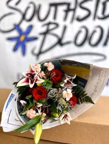 - No Vase included: Your flowers come wrapped in our signature compostable wet pack and Southside Weekly newsprint.