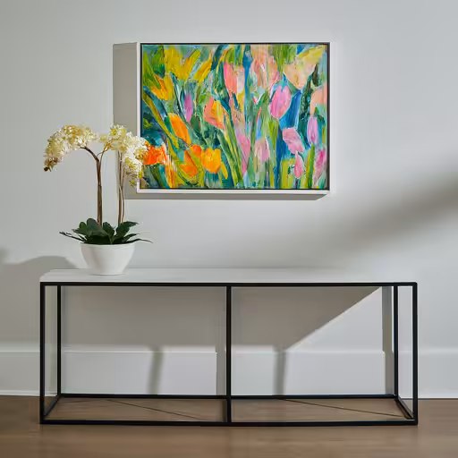 Do you want your flowers to blend in with the colors you already have in a room, or do you want them to POP? If your furniture is bright, some pale pink or white flowers can be super calming. But if your room is more neutral, think about making the flowers your statement piece – like a bouquet of sunshine-yellow sunflowers or really dramatic dahlias.